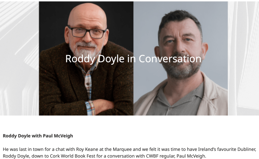 I’ll be interviewing Booker Prize-winner Roddy Doyle at Cork World Book Festival.