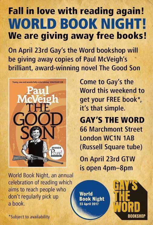 2000 copies of my debut novel ‘The Good Son’ are being given out all over the UK this week as part of the World Book Night 2017 celebrations. This is such an honour. And to think I volunteered giving out books on World Book Night twice, now my book gets chosen. You couldn’t make it up.